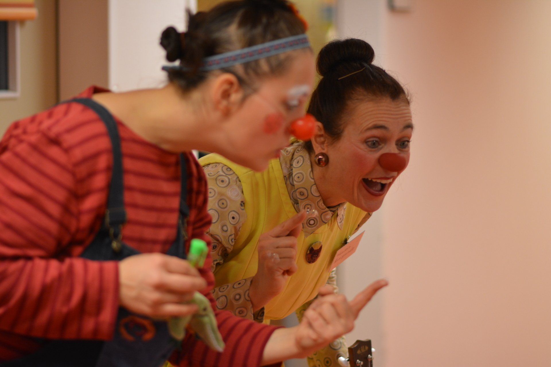 Meistens gehen zwei Clowns mit einem Liedchen auf den Lippen über die Flure der Kinderstation. Bevor die Clowns ein Zimmer betreten, fragen sie zunächst: "Dürfen wir reinkommen?" Wenn es möglich ist, kann das Spiel beginnen oder hat schon längst begonnen, denn das Hereinkommen kann schon ein Problem sein. Wenn das Kind lacht und zur sagt zur Mutter: "Oh, hast du die dummen Clowns gesehen!" dann ist schon der erste Kontakt entstanden. Staunend, humorvoll und einfühlsam können sie dann gemeinsam in eine andere Welt, in eine Fantasiewelt, eintauchen und für diesen Moment den Krankenhausalltag vergessen.
